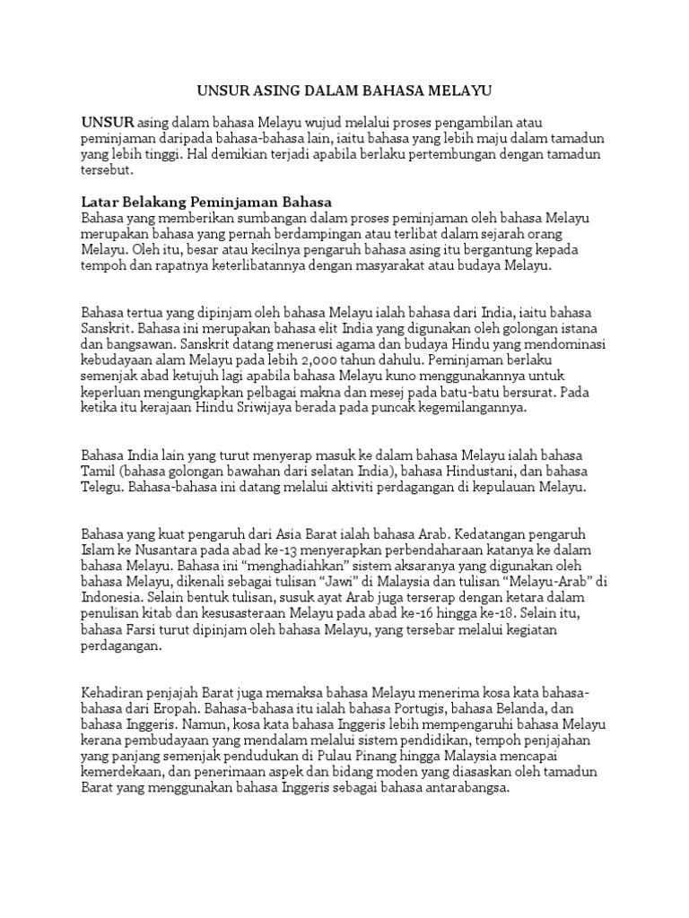 Unsur Asing Dalam Bahasa Melayu Pdf